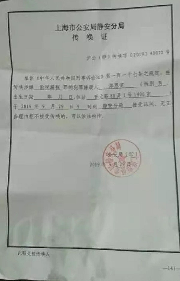 友人表示,“这是最近的第2次传唤,公安局传唤是没理由的,传唤证上写的是‘偷税漏税’,跟之前一样。”