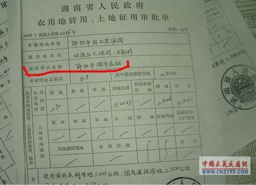 2003年起至今,在邵阳市城区内搞起了一场轰轰烈烈的紫薇博览园“的圈地开发运动,八年共骗取了国家数千万元农业开发扶助款,在当地市委副书记批示“请国土局给予支持”下,竟分文未交,3500亩土地数次变脸,化整为零,建商铺、造别墅,已非法谋利数亿元。保护伞层层假报,土地黑洞触目惊心。
