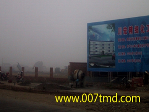 图为这家叫川宏的化工厂已经在大兴土木建厂房