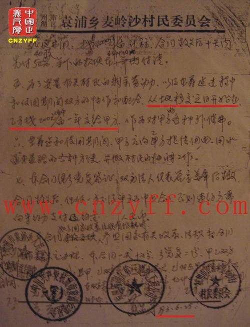 1993年时任麦岭沙村党支部书记郑关海与当时负责经营袁浦乡办企业,杭州市西湖区第三建筑公司总经理,妻弟葛品荣策划编造三建公司(简称)因筹建“中外合资公司”需要征用麦岭沙村村民承包耕种的集体土地,这个虚构用地事由,窜通原袁浦乡党委委员吴兴根共同参与合作,隐瞒着麦岭沙村全体村民。在未经全体村民签民同意,并与拥有承包经营权证的部分村民签订征地安置补偿协议的情况下,于1993年6月25日以每亩补偿1400元价钱,当时超市场低价,50年征用时间,名为征地,实为租地的秘密书面征地合同。由麦岭沙村原党支部书记,郑关海代表村委会与其妻弟,原杭州市西湖区第三建筑工程有限公司总经理葛品荣代表公司签名盖章,经原袁浦乡党委委员吴兴根参与合作,并加盖原袁浦乡党委和乡政府公章,作见证。实际上当杭州市西湖区第三建筑工程有限公司征用该麦岭沙地块后并未实际筹建所谓“中外合资企业”,也未建造任何形式的公司厂房,倒将该地块长期抛荒6年,仅只堆放了几十块水泥预制板。长期不让村民耕种,又未按时向被用地村民自觉支付土地安置补偿款额。