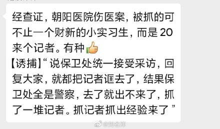 消息人士称,院方说保卫处同意接受采访,回复大家,把记者都诓了进去,结果里面都是警察,去了就出不来了,抓了一堆记者。甚至央视一套的也被抓。