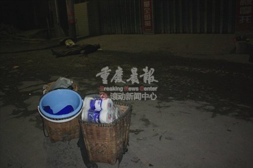 案发现场,死者不远处放着生前赶场采购的物品。群众供图